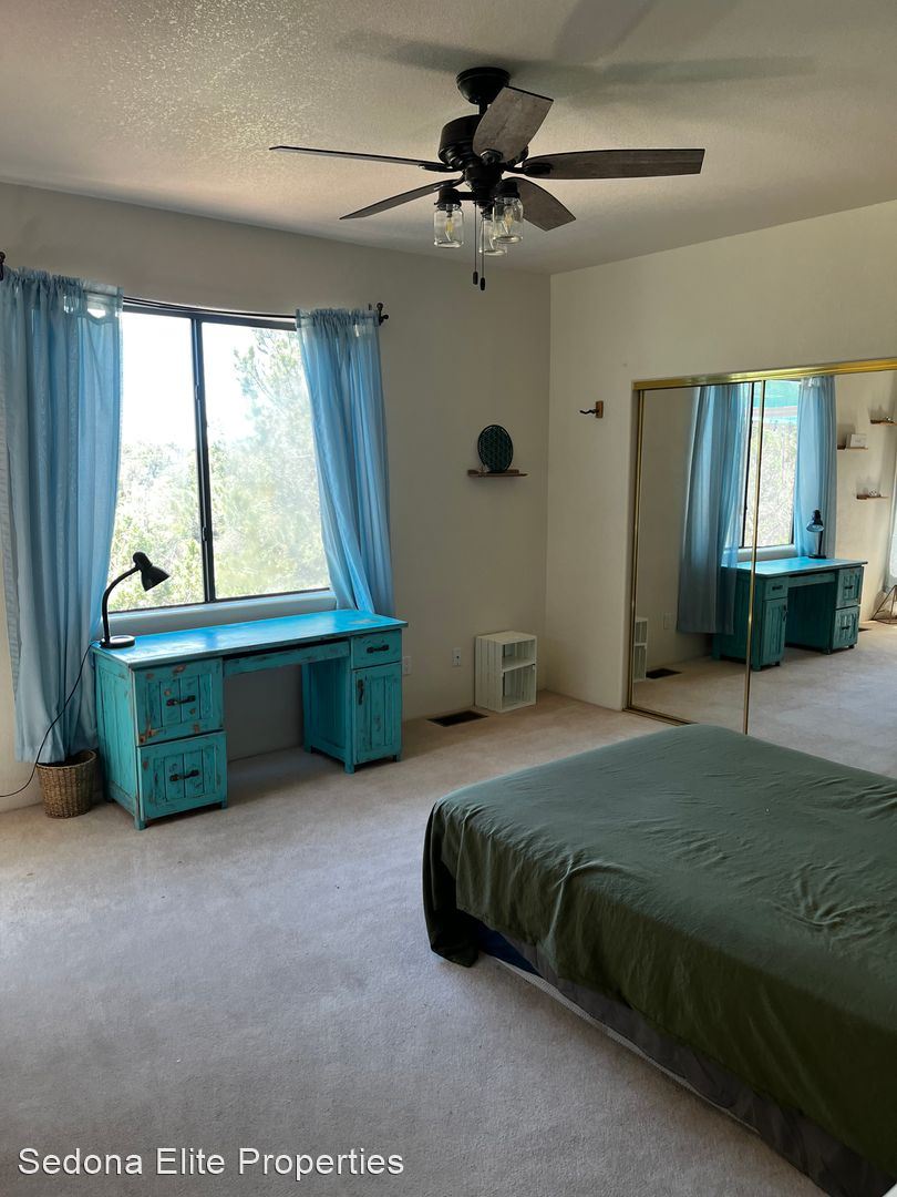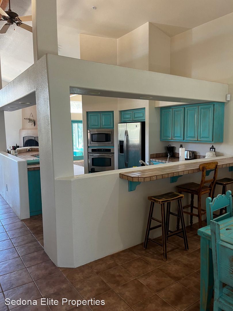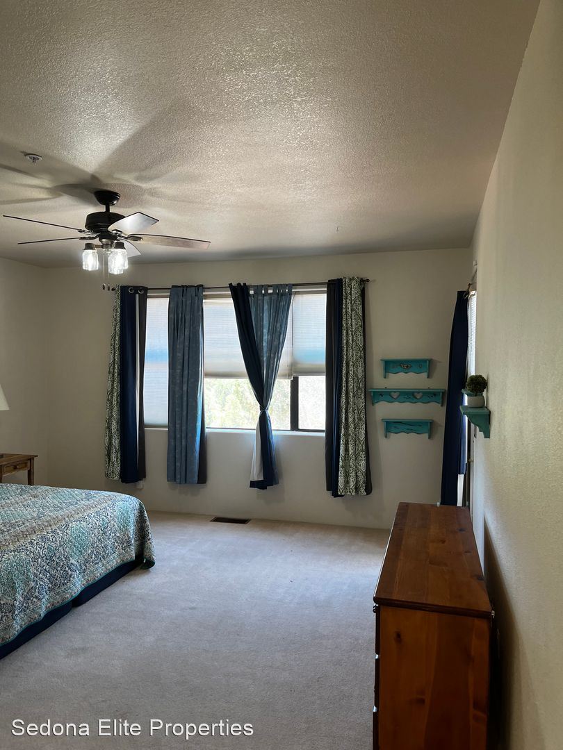 Furnished, 1 Month Minimum - This charming three bedroom, three bathroom home is located in the coveted Yavapino Estates on a sprawling lot that's nearly an acre. Unparalleled views of the mountains, private fruit trees, and fully fenced yard in a private setting just off of Highway 179. Large rooms with big windows and lot of light provide the perfect getaway.